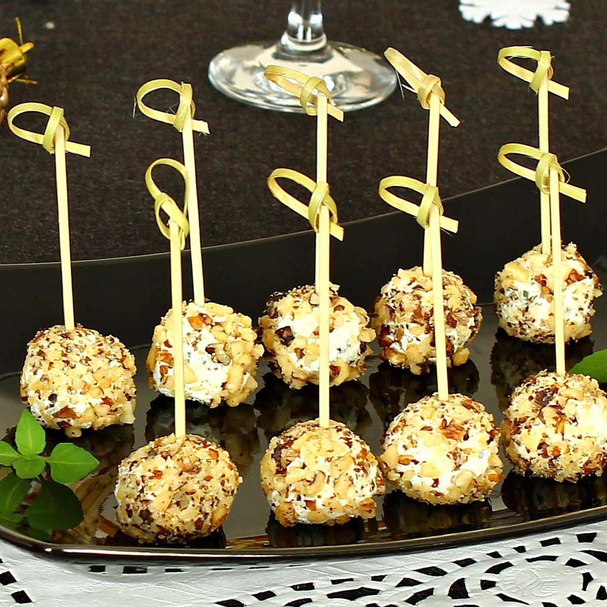 Перед сервировкой в каждый шарик можно вставить шпажку или зубочистку для удобства, а также украсить блюдо листьями базилика или зернами граната для изысканного вида.