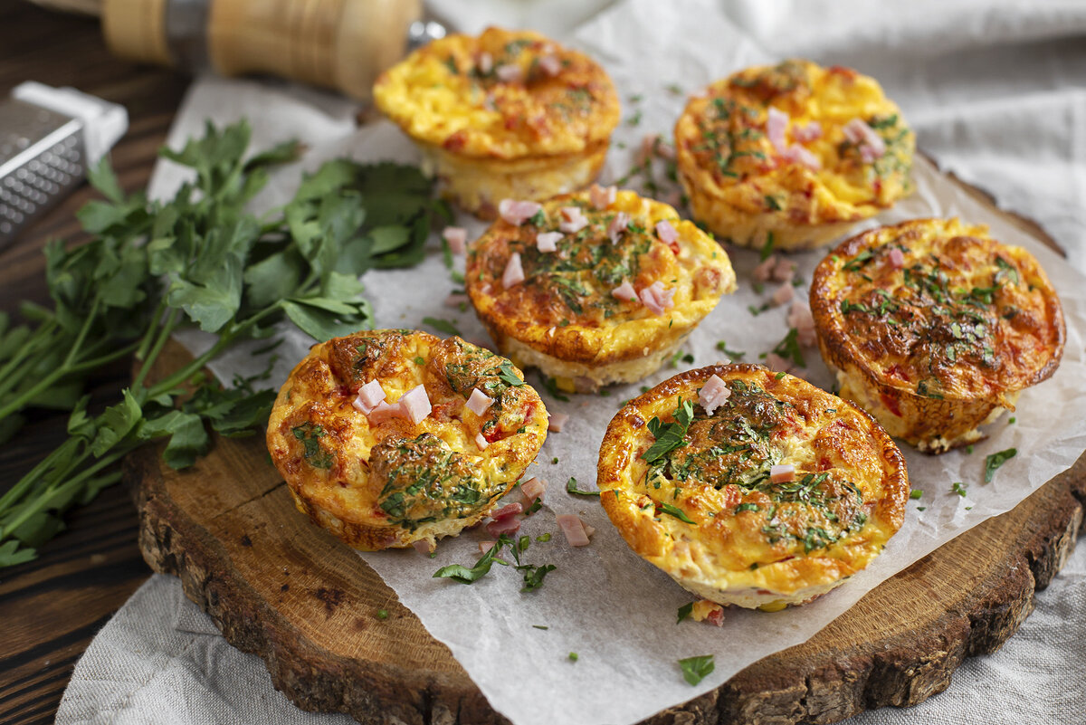 Школьный перекус №1: Воздушные маффины из омлета с ветчиной и сыром