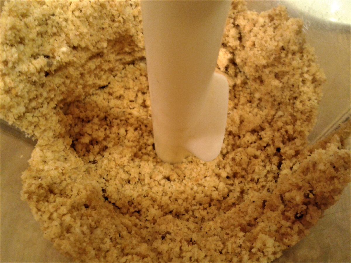 - Размелите печенье в блендере до получения мелкой крошки.