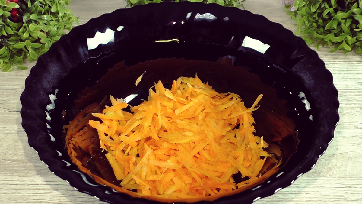 Начните с того, чтобы натереть морковь на крупной терке и выложить её в миску. Затем нарежьте лук произвольно, добавьте его к моркови. Для более мягкого вкуса лук можно замариновать, хотя это не обязательно.