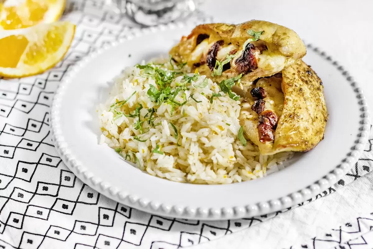 Капрезе в новом исполнении: фаршированная куриная грудка с апельсиновым рисом