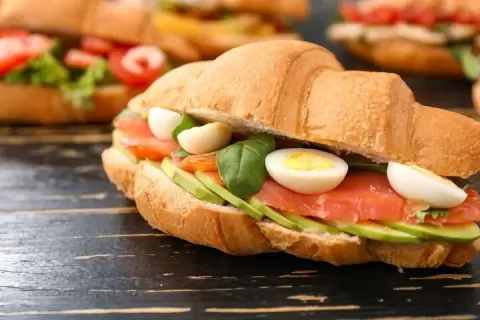 Фантастическая закуска для любого торжества — это круассан с авокадо и лососем. Это блюдо подходит не только для званого ужина, но и отлично замещает завтрак. Удобно брать его с собой в путешествия, положив в термосумку или завернув в фольгу. Лучший вариант — использовать свежевыпеченные круассаны, однако, если времени нет, можно приобрести готовые. Главное, чтобы они были без сладкой начинки.