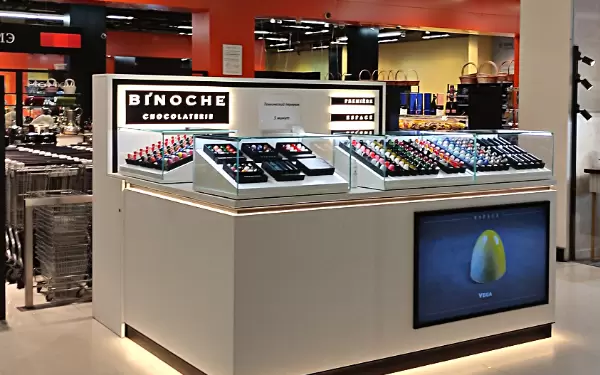 На недавней прогулке в модный торговый центр "Времена года" цель была ясна: поиск роскошного подарка, который, к сожалению, не удался. Компании Comptoir du Cacao не порадовали разнообразием, и тут как раз рядом оказался павильон BINOCHE.