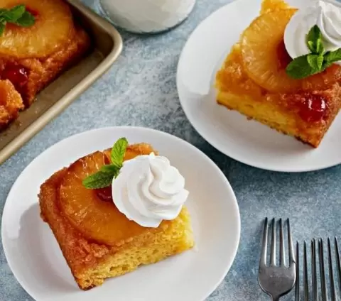 Коричневый сахар, ананасы, вишни и легкое тесто — вместе это делает удивительно вкусный перевернутый пирог с ананасами. И только вы знаете, как быстро его приготовили!