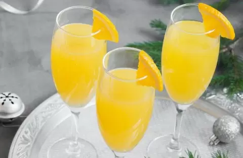 - Мандариновая Мимоза: Отличный способ начинать вечер с нежного освежающего вкусом. В состав входят свежевыжатый мандариновый сок и шампанское. Не забудьте украсить долькой мандарина!