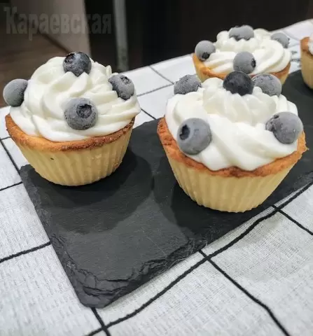 Для приготовления крема сливки взбиваются до увеличения объема, после чего добавляется крем-чиз и сладость по вкусу. Крем получается густым и ароматным. Остывшие капкейки украшаются кремом с помощью кондитерского мешка, а для завершения можно добавить свежие ягоды, тщательно обваляв их в пудре эритрита.