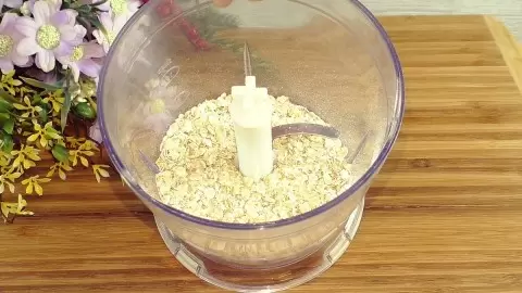 Сначала овсяные хлопья требуется слегка измельчить в блендере, не до состояния муки. После этого их высыпают в глубокую миску.