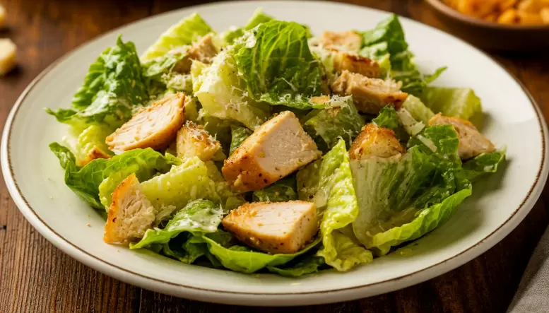 Этот вариант максимально приближен к оригинальному рецепту, который разработал Цезарь Кардини. В нем отсутствуют дополнительные ингредиенты, акцент сделан на насыщенный вкус соуса и текстуру свежего салата.