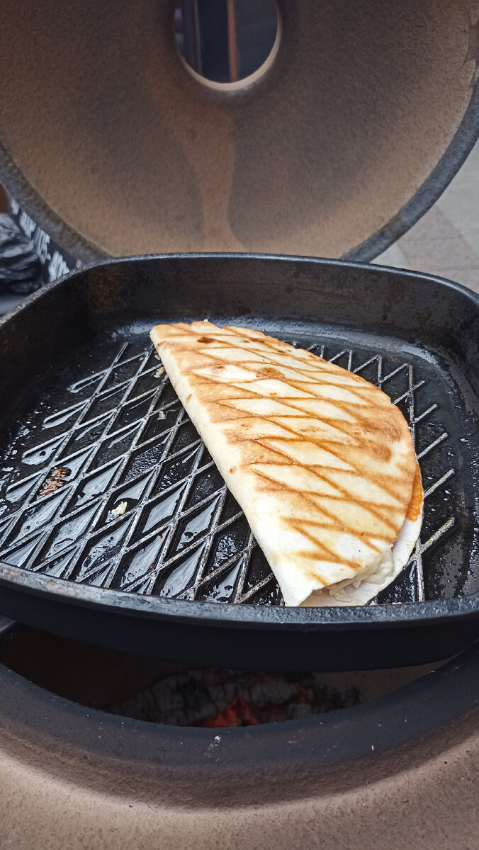 Для начинки рыбу следует размять вилкой до однородного состояния. Затем нарезать помидор, лук и корнишоны, не забыв порубить кинзу. Лепешку намазать фасолевым майонезом, а на одну половину уложить слоями помидоры, рыбу, лук и корнишоны, посыпая все кинзой. Сложите лепешку пополам и обжарьте на гриле или сковороде с растительным маслом до золотистой корочки.