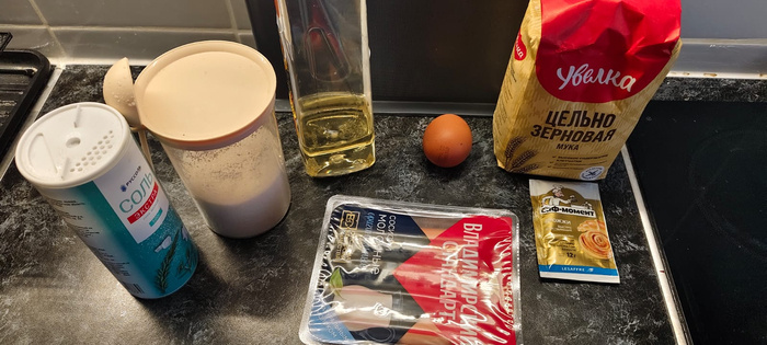 - Для теста: мука, дрожжи, вода, сахар, соль и немного масла для нежности.