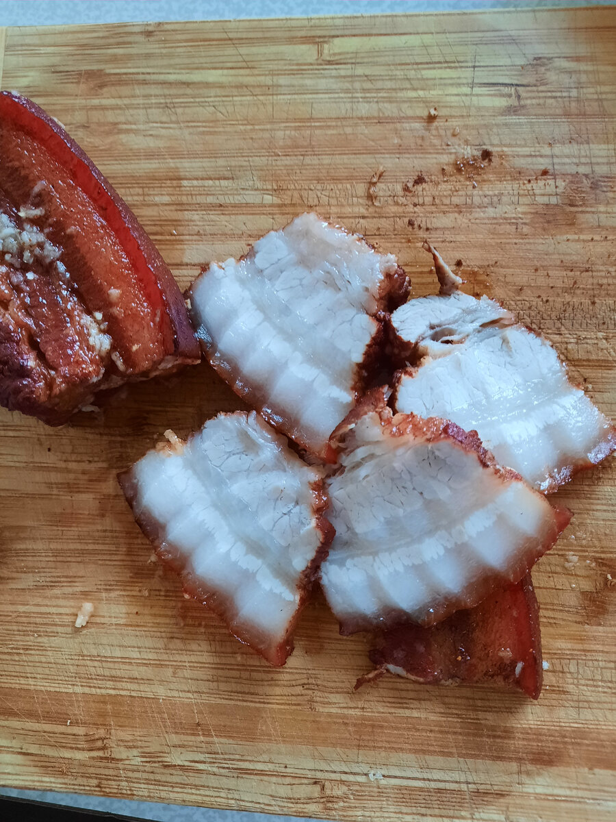 - 800 г - 1 кг свиной грудинки с прослойками мяса;
