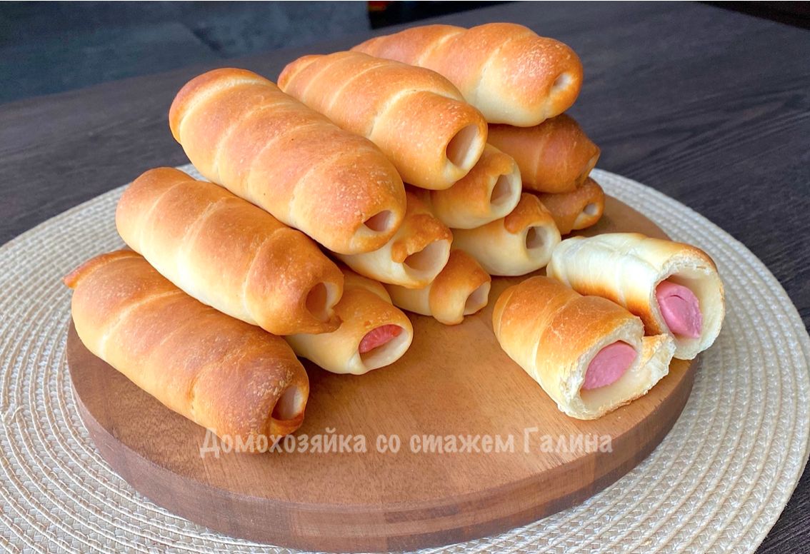 Чтобы нежное тесто стало еще мягче, можно укрыть готовые сосиски полотенцем и оставить до полного остывания.