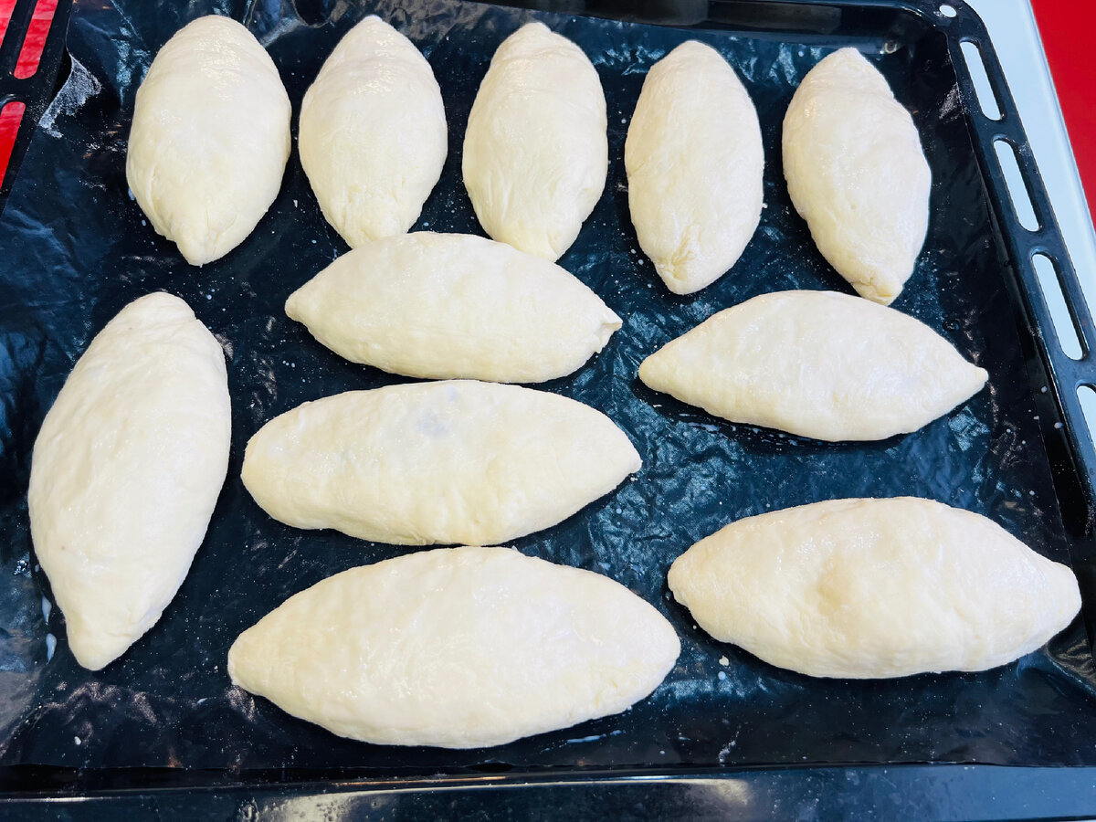 5. Выложить пирожки на противень, смазать взбитым яйцом и отправить в разогретую до 180 градусов духовку. Выпекать около 40 минут до золотистой корочки.