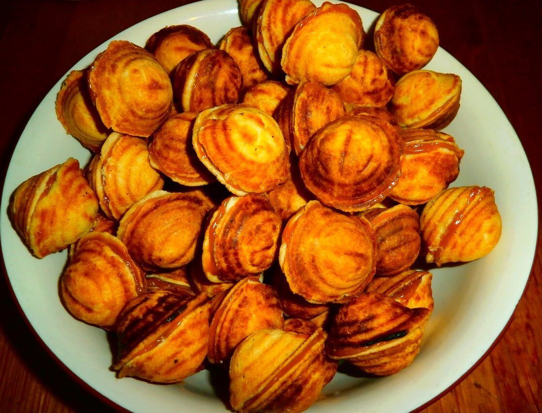 Эти орешки печатала бабушка, затем мама, а теперь пришла очередь для нового поколения. В детстве сгущенка не вызывала особого интереса, но вот вареная версия была настоящим деликатесом. Временами даже варила ее самостоятельно для удовольствия. Однако однажды, когда одноклассница случайно устроила «взрыв» на кухне, страх покалечил кулинарные амбиции. После случая с метанием сгущенки по стенам, оставалась только надежда на продукцию отечественного производства.