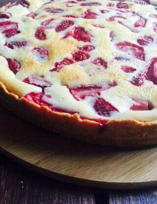В глубокой миске соедините 250 г пшеничной муки с холодным сливочным маслом. Разомните их вместе, пока не получите крошковатую массу. Можно использовать блендер для удобства.Добавьте одну столовую ложку сахара и одно яйцо. Хорошо перемешайте до однородности.Сформируйте тесто в шар, оберните его пищевой пленкой и уберите в холодильник на полчаса.Приготовьте сметанную заливку: в сметану добавьте 3 столовые ложки муки, оставшийся сахар и ванильный сахар. Вбейте яйца и тщательно перемешайте венчиком до получения однородной массы.Клубнику нарежьте половинками или четвертинками, если она большая. Замороженные ягоды нужно заранее разморозить и отжать от лишней жидкости.Раскатайте тесто и распределите его по форме, тщательно проколоть вилкой.Выложите кусочки клубники на тесто и залейте сметанной массой.Разогрейте духовой шкаф до 180 градусов и выпекайте пирог около 50 минут, пока заливка не застынет, а тесто не станет золотистым.Этот восхитительный пирог станет главным украшением вашего стола. Балуйте себя и своих близких вкусом лета!