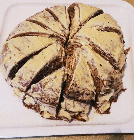 - На разогретой сковороде обжаривать массу, формируя коржи, как это делается для блинов.