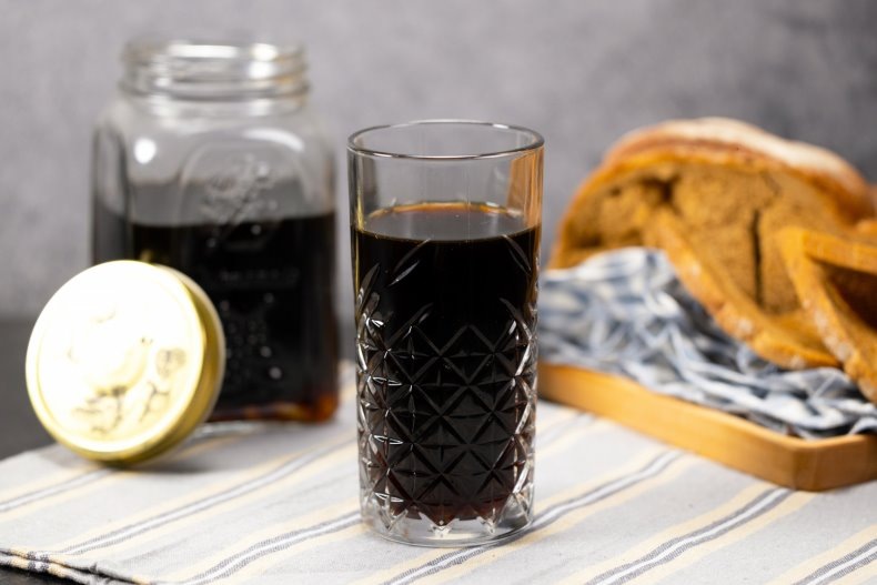 3. Для достижения наилучшего вкуса охладите напиток в холодильнике на 8 часов. Затем разлейте по стаканам и наслаждайтесь охлаждённым квасом.