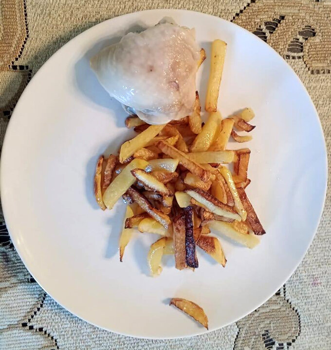 После того как курица начнет готовиться, можно заняться репой. Её необходимо очистить и нарезать соломкой или брусочками, напоминая картошку фри. На разогретую сковороду с растительным маслом выкладывается нарезанная репа, которую необходимо жарить на среднем огне в течение 15-20 минут. Важно помешивать репу периодически, чтобы она подготовилась до мягкости и покрылась золотистой корочкой; в конце можно добавить немного соли.