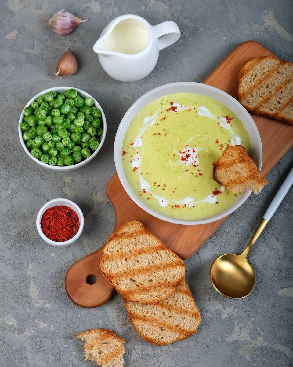 Этот освежающий крем-суп из зелёного горошка станет настоящим украшением весеннего стола. Легкий и питательный, он согревает душу и радует вкусом, сочетая в себе простоту приготовления и изысканность подачи.
