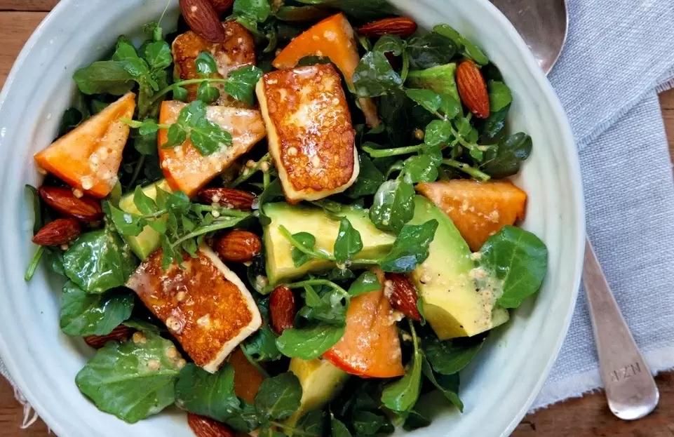 - Салат с запеченной хурмой и сыром Фета: Сочетание сладости хурмы и солоноватого вкуса сыра создаст гармоничное и яркое блюдо, идеально подходящее для осеннего стола.