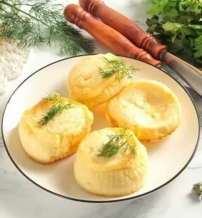 Когда омлет готов, аккуратно извлечь его из формочек и выложить на тарелку. Это прекрасное блюдо отлично смотрится в компании свежих овощей, колбасы или жареного мяса.