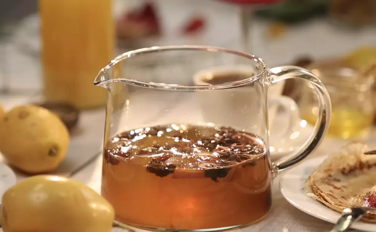 Затем напиток накрыть крышкой и дать настояться 30 минут. После этого можно процедить его и довести до кипения еще раз. Перед подачей стоит добавить ломтик лимона или несколько капель лимонного сока. Сбитень рекомендуется пить горячим. Приятного аппетита!