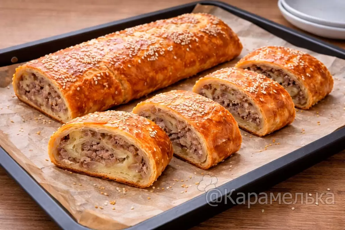 В каждом доме бывают такие моменты, когда особенно хочется чего-то сытного и ароматного, что способно собрать всех за столом без лишних приглашений. Рулет из слоёного теста с мясной начинкой — именно то, что нужно в такие дни. Пока этот кулинарный шедевр находится в духовке, воздух наполняется невероятным ароматом свежей выпечки и сочного мяса, а время словно замедляет свой бег.