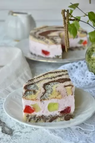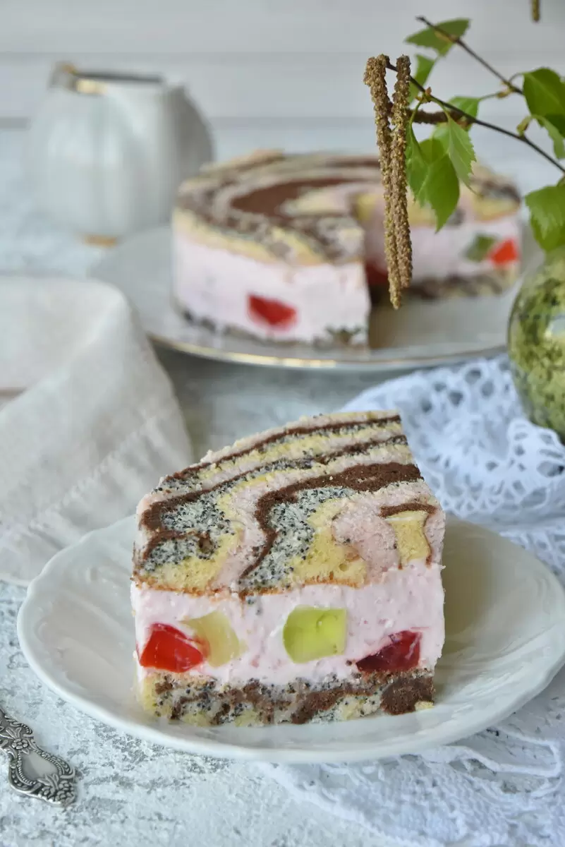 Праздничный десерт в виде многослойного лакомства, полное ярких красок и неповторимых текстур, не оставит равнодушным ни одного гостя. С вычурным узором, напоминающим цыганский платок, этот десерт не только радует глаз, но и удивляет своим вкусом.