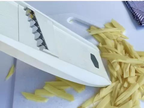1. Картофель нарезать соломкой, можно использовать терку для корейской моркови с крупной насадкой.