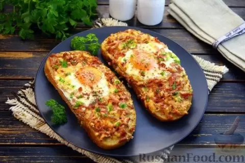 - Горячие бутерброды с сосисками и яйцами. Эти запеченные бутерброды поразят своим вкусом: натертые сосиски и сыр ложатся на хлеб, а сверху разбивается яйцо. Такой вариант можно по праву назвать «ленивыми хачапури», одним бутербродом можно позавтракать сытно.