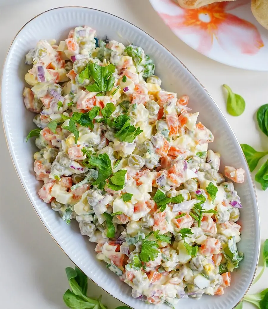 Если хочется разнообразия, вот несколько оригинальных вариантов салатов, которые сохранят общую концепцию оливье, но при этом предложат новые вкусовые ноты.