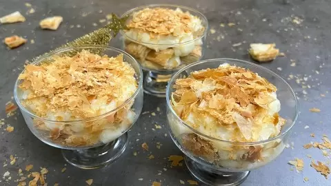 Основной секрет этого десерта в том, что он готовится всего за 20 минут. Рецепт включает заварной крем, в котором не используется сливочное масло, что придаёт ему лёгкость и нежность. Подача в прозрачных стаканах или креманках делает этот десерт не только вкусным, но и очень эстетичным.