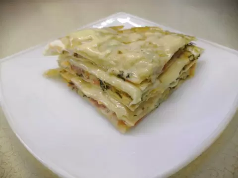 На 100 граммов готового блюда содержится 173.3 ккал, 12.6 г белков, 10.0 г жиров и 8.0 г углеводов. В целом, в перекусе можно найти 502.7 ккал, 36.6 г белков, 29.1 г жиров и 23.3 г углеводов — такие цифры делают этот завтрак насыщенным и сытным.