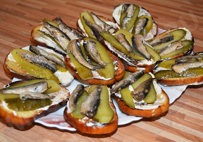 - Шпроты — 10 шт.