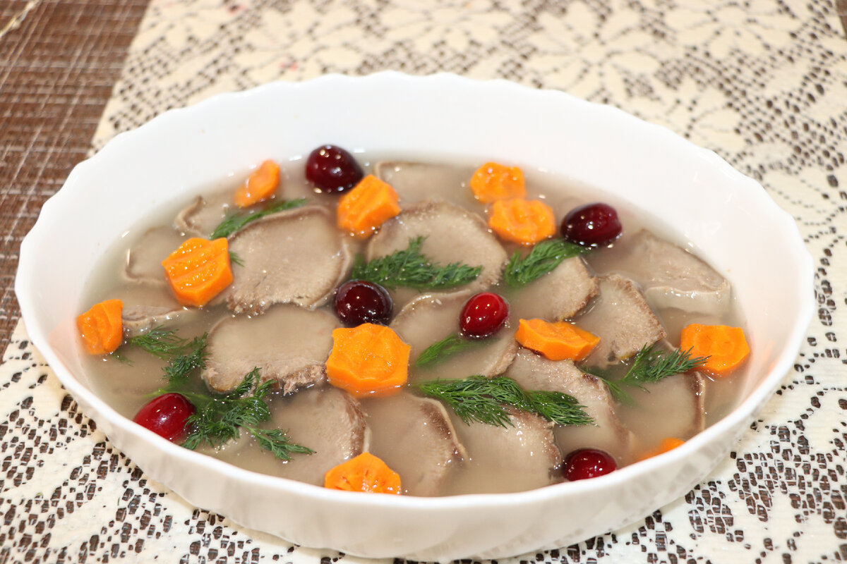 Заливное из говяжьего языка — это не только изысканное угощение, но и настоящий кулинарный шедевр, который может занять достойное место на праздничном столе. Это блюдо сочетает в себе изумительный вкус и эффектный внешний вид, делая его идеальным для любой торжественной ситуации.