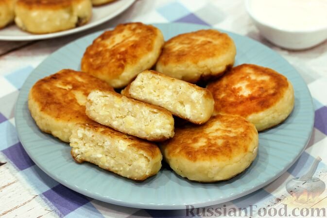 - Сырники с копченым сыром: необычные, но крайне вкусные. Сочетание сыра, творога и зеленого лука делает их идеальными как на завтрак, так и на перекус.