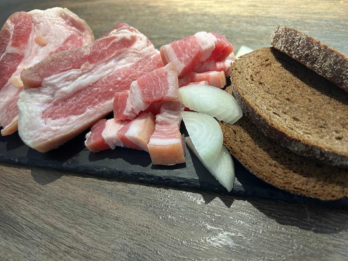 - Цвет: Идеальное сало должно быть белым или слегка кремовым. Розоватый оттенок — признак крови, что может привести к несвежему вкусу.