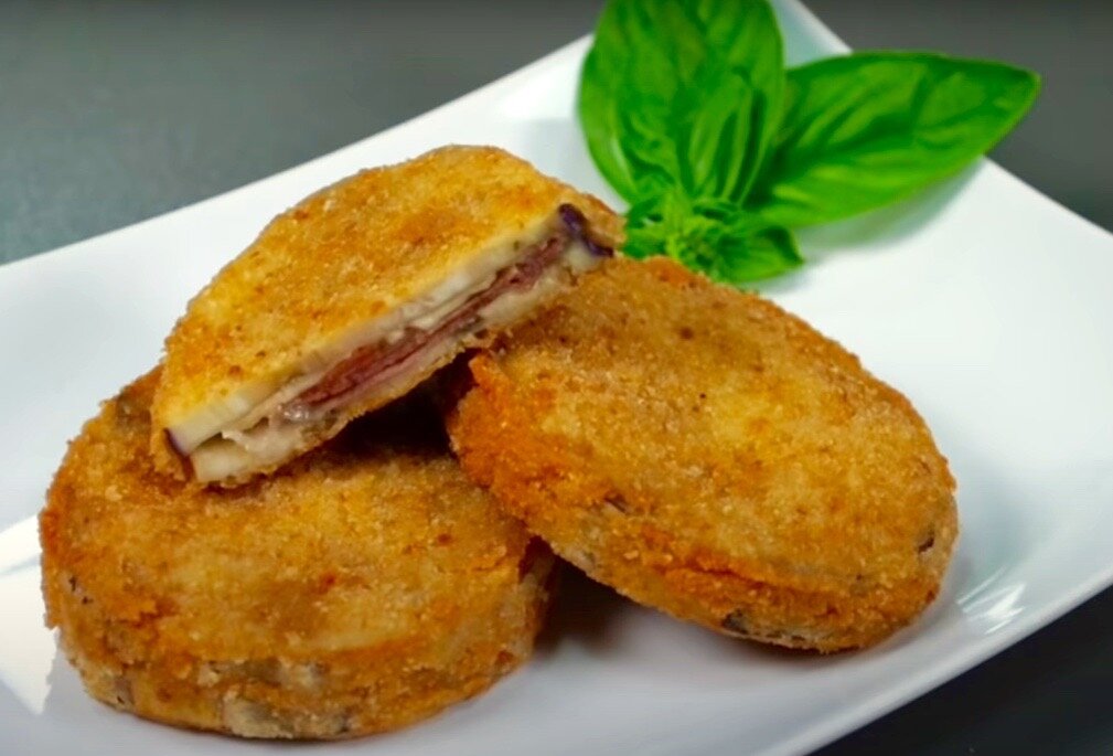 - Баклажанный «Кордон Блю»: Этот вариант закуски сочетает в себе нежный баклажан, расплавленный сыр и ароматную ветчину. Блюдо не только вкусное, но и красивое, подается с разнообразными соусами.
